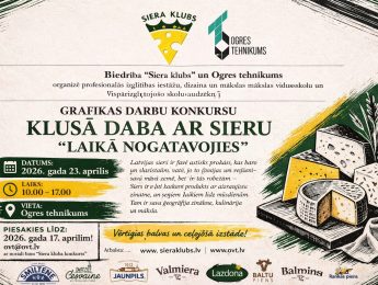 27.03.2026Biedrība “Siera klubs” sadarbībā ar Ogres tehnikumu aicina Jūsu izglītības iestādes audzēkņus piedalīties grafikas darbu konkursā “Klusā daba ar sieru “Laikā nogatavojies””.