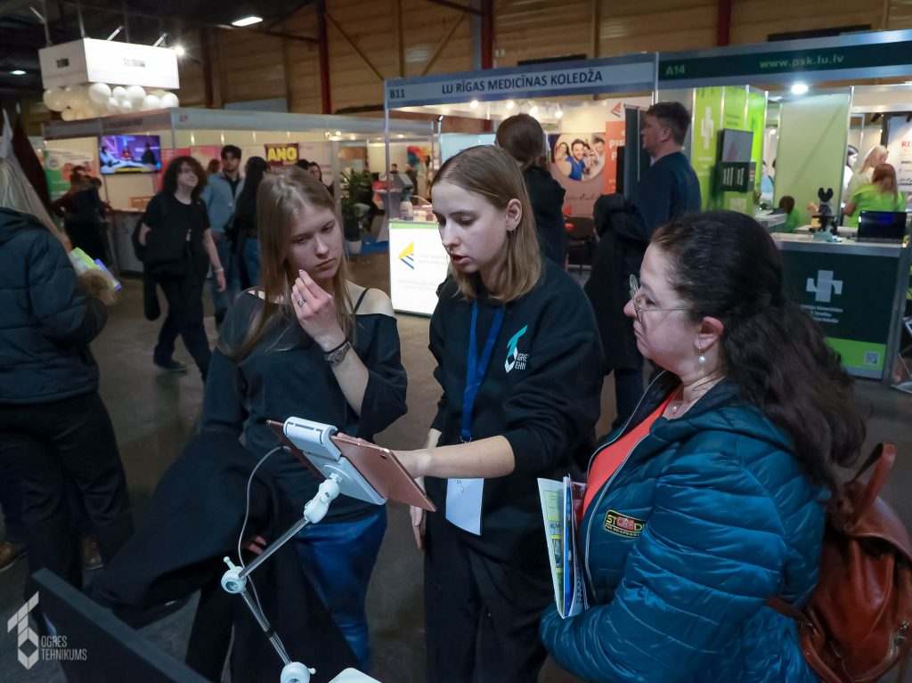 Ogres tehnikums savā stendā sniedza informāciju par izglītības iespējām pēc 9.klases, pēc 12.klases un par Pieaugušo izglītības centra plašo piedāvājumu. Praktiski izstādes dalībniekiem bija iespējas darboties vairākās darbnīcās: dizaina , elektronikas, video operatoru, audiovizuālās komunikācijas darbnīcā un darbā ar meža mašīnu simulatoru.