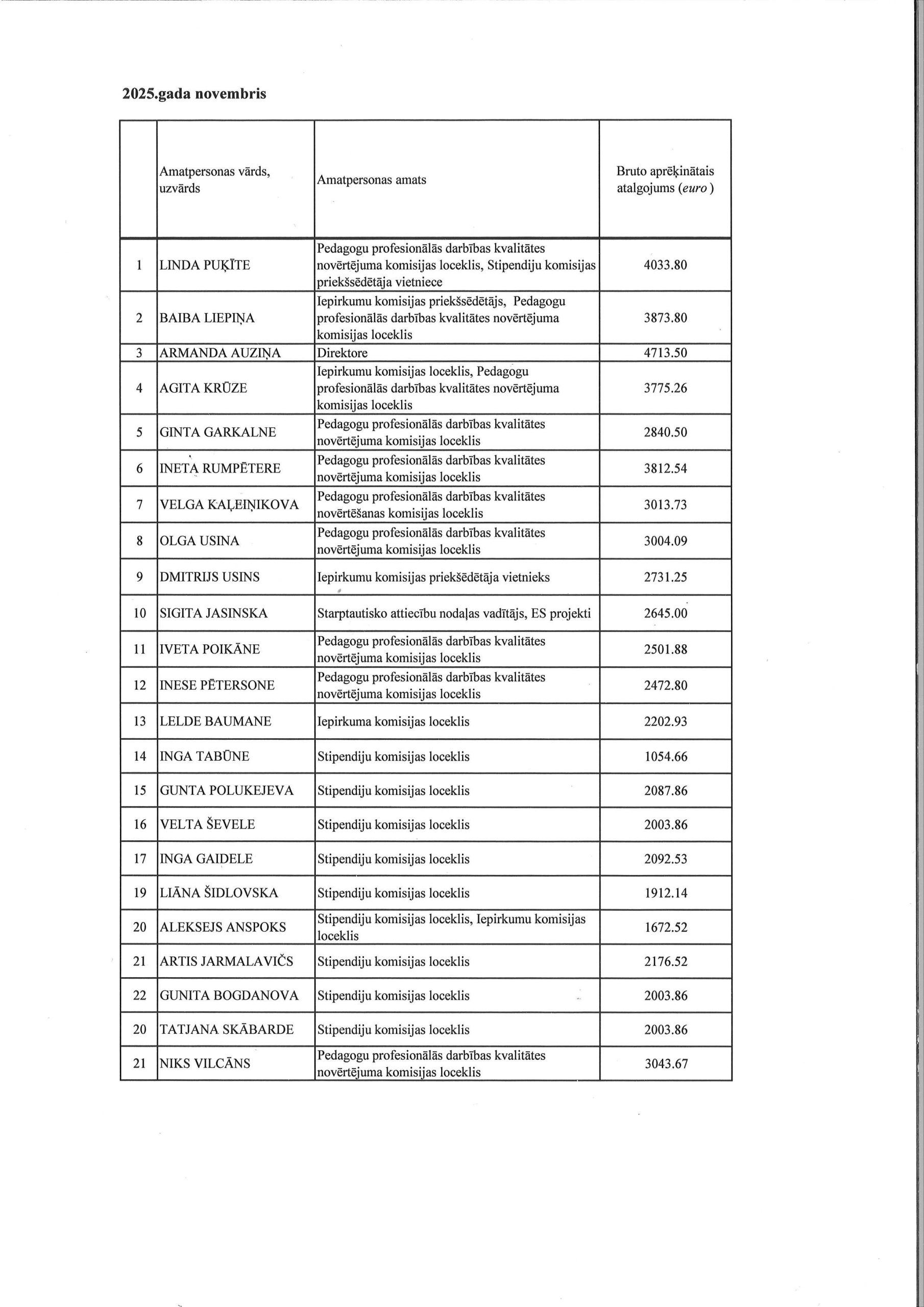 Amatpersonu atalgojuma atskaite 2025. gada novembris
