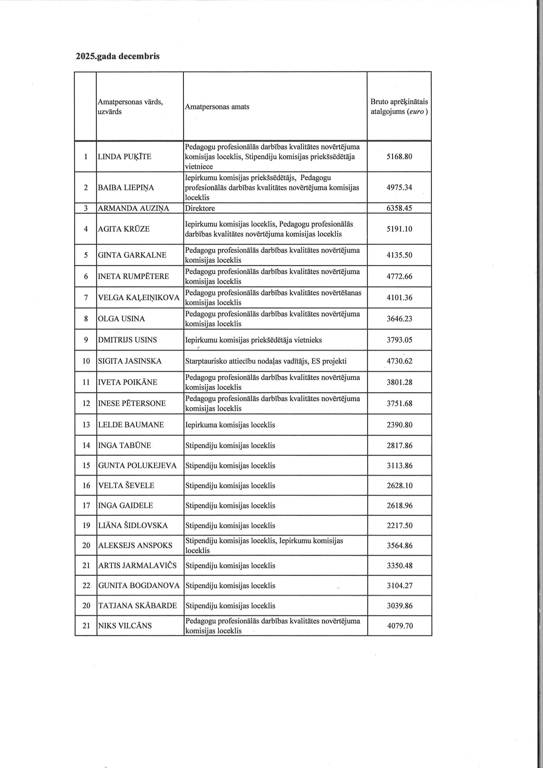 Amatpersonu atalgojuma atskaite 2025. gada decembris