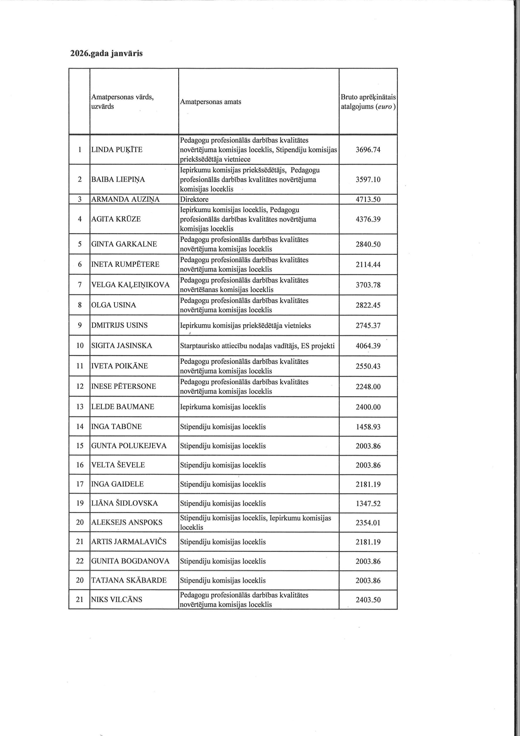 Amatpersonu atalgojuma atskaite 2026. gada janvāris