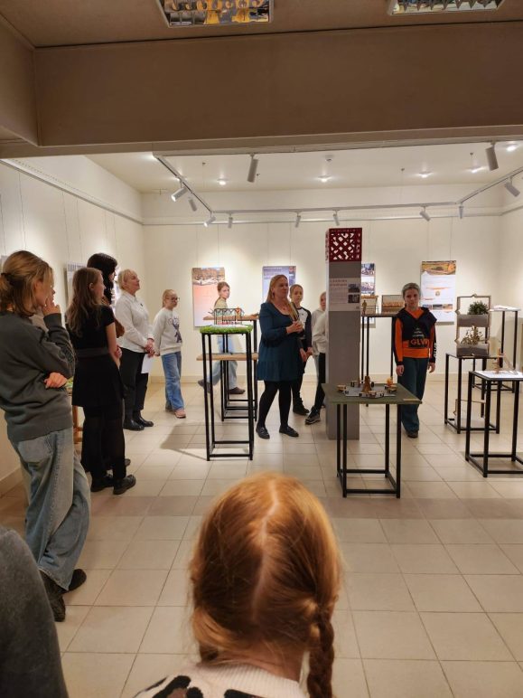 Izstādes atklāšanas dienā ar skolēniem savā pieredzes stāstā par vides dizainu dalījās profesionālo priekšmetu skolotāja Sanita Mūrmane-Miķelsone. Jaunieši ar interesi klausījās par to, kā tiek meklēti risinājumi, kā reizēm tieši nestandarta pieejas rada labākos rezultātus un cik daudzpusīgas zināšanas nepieciešamas, lai realizētu vienu projektu no idejas līdz īstenošanai.