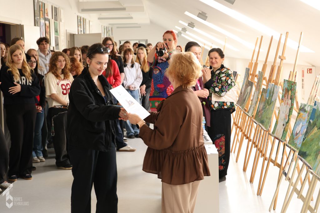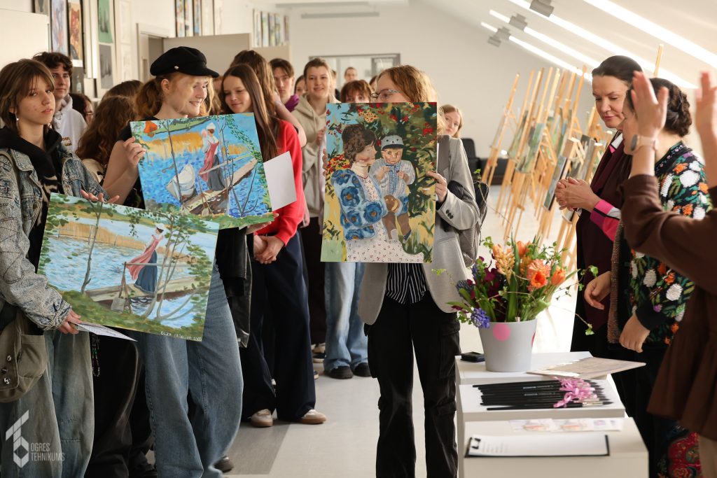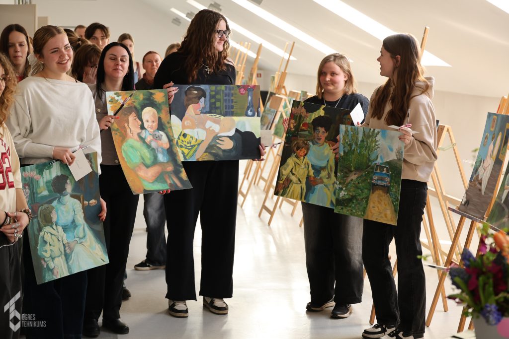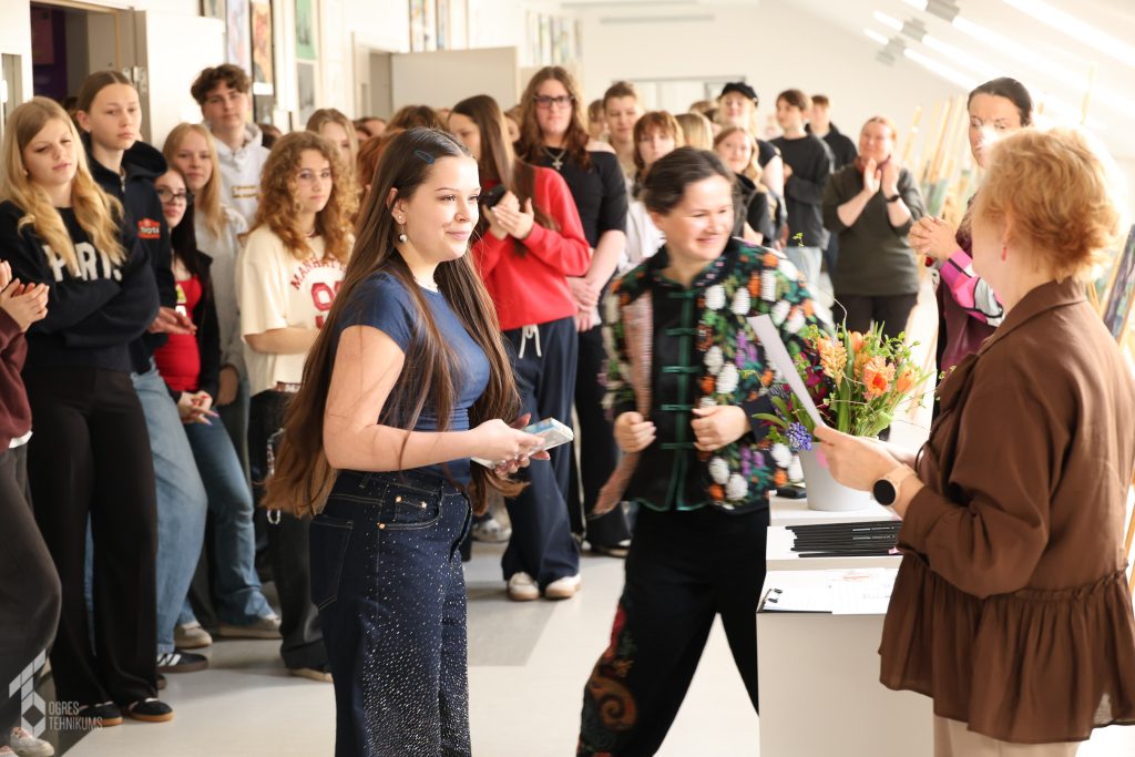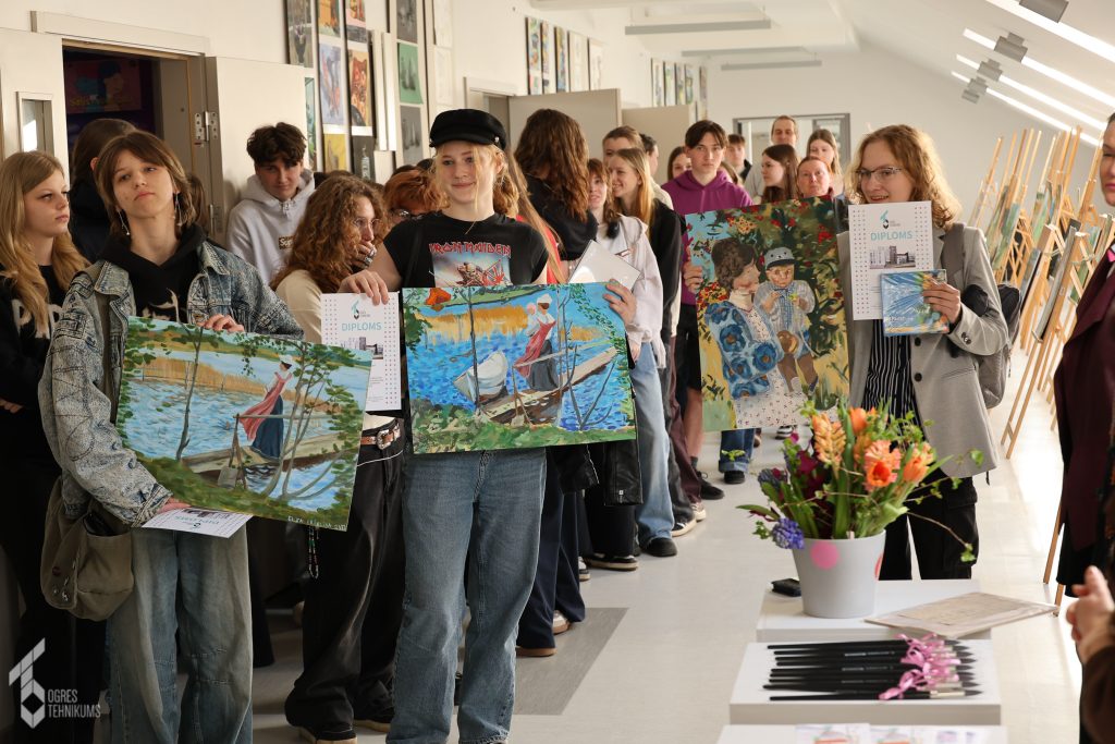 Īpaši tika godināti arī audzēkņi, kuri ar lepnumu pārstāvēja Ogres tehnikumu valsts konkursā gleznošanā: Evelīna Mālniece (3VD), Elza Zaretoka (3AV), Egija Māske (2GD) un Monika Teodora Rožkova (4GD).