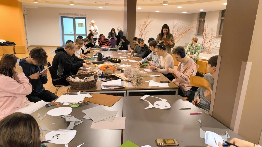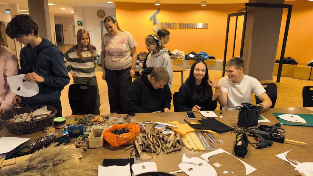 Ogres tehnikumā notika radoša un izzinoša Ķekatu masku darbnīca, kurā jaunieši iepazinās ar latviešu tradicionālās maskošanās kultūras nozīmi un paši izmēģināja spēkus masku veidošanā.