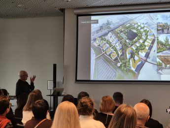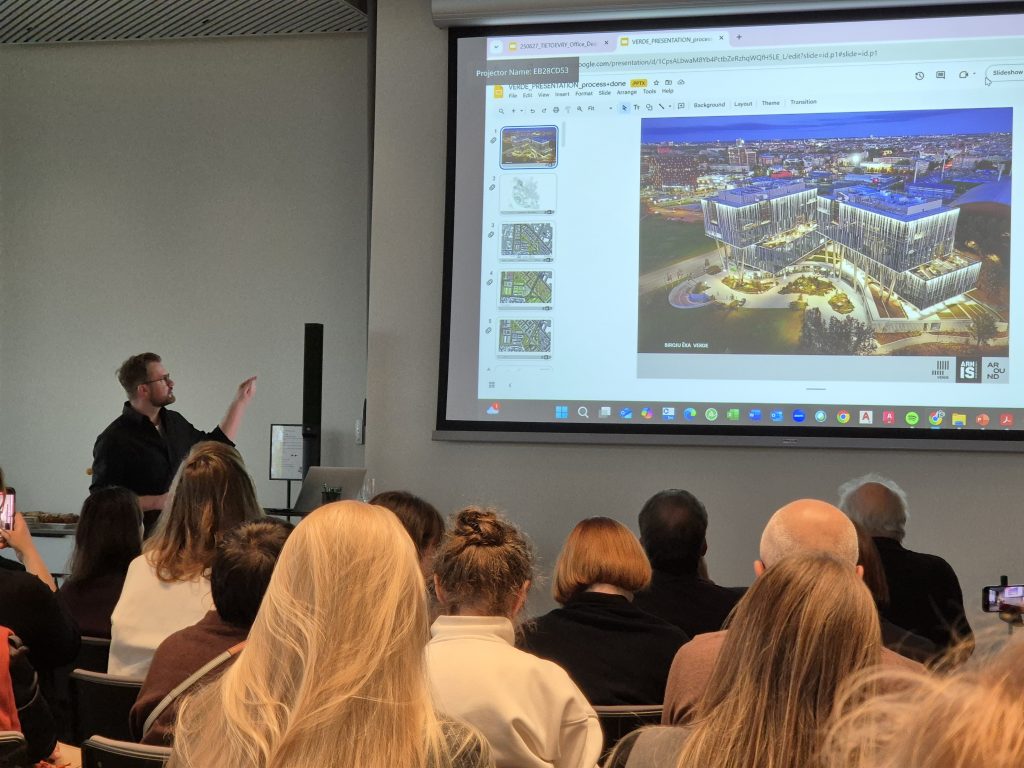 Andris Kronbergs (/ARHIS ARHITEKTI/ dibinātājs un vadošais arhitekts) iepazīstināja ar biroju ēkas VERDE projekta kopējo konceptu un kompleksa idejas pilsētbūvniecisko kontekstu.