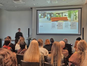 Arhitekts Reinis Prēdelis (/ARHITEKTŪRAS STUDIJA “AROUND”/ līdzdibinātājs un vadītājs) semināra dalībniekiem atklāja koplietošanas telpu izveides principus.
