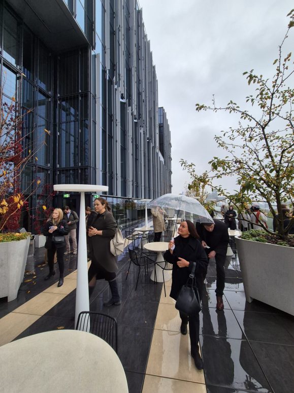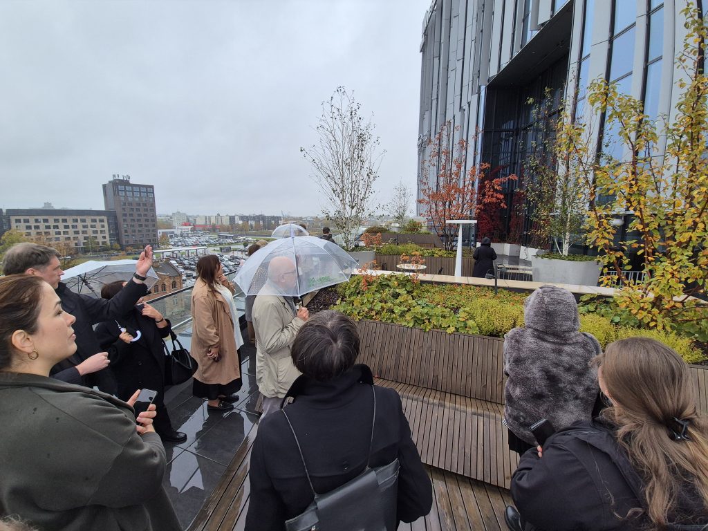 Dienas pirmajā pusē dalībniekiem bija iespēja ne tikai baudīt izcilo biroju ēkas VERDE  arhitektūru un interjeru, bet arī tikties ar ēkas autoriem un piedalīties sarunā VERDE perfekti izstrādātajā un realizētajā semināru zālē.