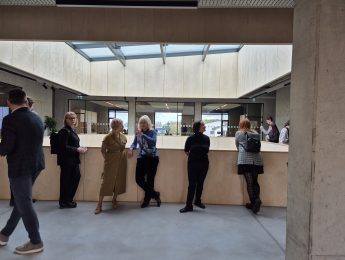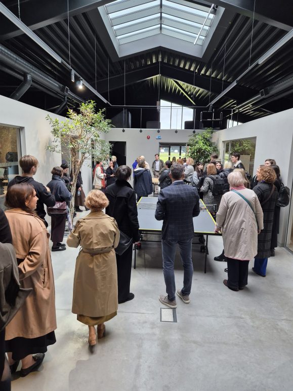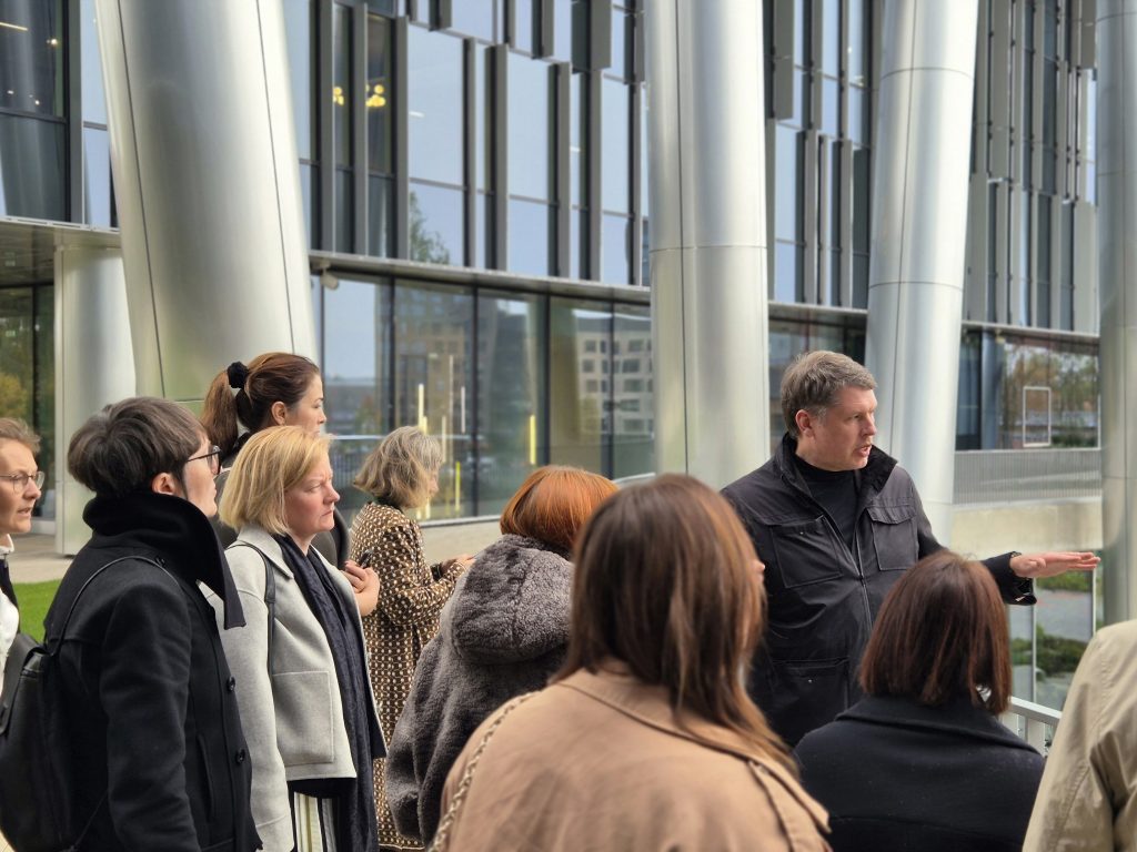 Dienas otrajā pusē semināra dalībnieki apmeklēja un iepazina Mācību centru ar solāro jumtu Mārupē, kas nominēts Latvijas Arhitektūras gada balvai 2023 un EU Mies Awards 2024. Projekta autori – arhitekti Guntis Ziņģis un Kristīna Reinberga (/SIA GoodPattern/). Šis ēku komplekss izceļas ar ilgtspējīgas būvniecības principu ievērošanu, betona un koka materiālu harmonisku kombināciju interjera dizainā, radot siltu un mūsdienīgu atmosfēru.